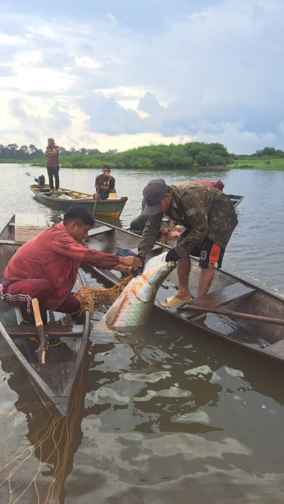 De acordo com as condicionantes da autorização de pesca emitida pelo Ibama, os peixes capturados, deverão ser transportados da UMP (Unidade de Manejo Sustentável de Pirarucu), lacrados e acompanhados das planilhas de monitoramento biométrico, preenchidas, conforme o modelo próprio e da autorização de captura.