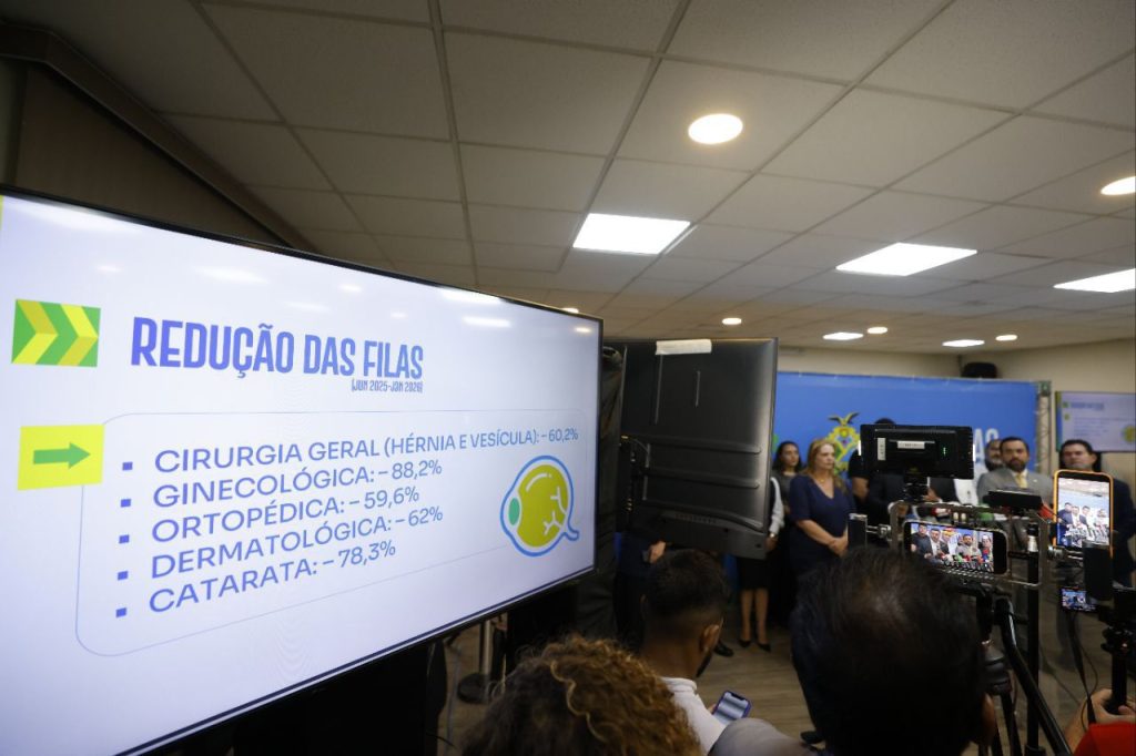 Com o aumento da oferta, o Estado registrou queda expressiva nas filas por especialidade. Entre julho de 2025 e janeiro de 2026, a redução foi de 60,2% nas cirurgias gerais (hérnia e vesícula), 88,2% nas ginecológicas, 59,6% nas ortopédicas, 62% nas dermatológicas e 78,3% nos procedimentos de catarata.