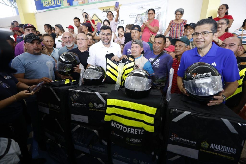 A programação social contemplou a entrega de 12 kits de segurança para motofretistas pelo Departamento Estadual de Trânsito do Amazonas, contribuindo para a regularização e geração de renda desses profissionais.
