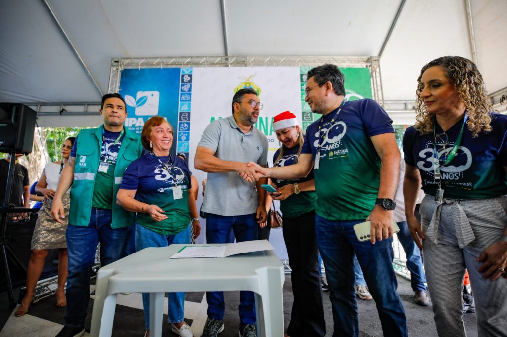 O governador Wilson Lima sancionou, nesta sexta-feira (12/12), o reajuste da data-base dos servidores do Instituto de Proteção Ambiental do Amazonas (Ipaam) e anunciou a publicação, até o fim de dezembro, do edital do concurso público do órgão, com 140 vagas, após 18 anos sem seleção. As ações foram apresentadas durante coletiva na sede do Instituto, em Manaus, dentro da programação comemorativa pelos 30 anos do órgão, que também inclui a entrega dos tótens do Ipaam Digital, da nova recepção e dos Cheques Verdes do Projeto Floresta+ Amazônia, além de nova portaria de reposição florestal.