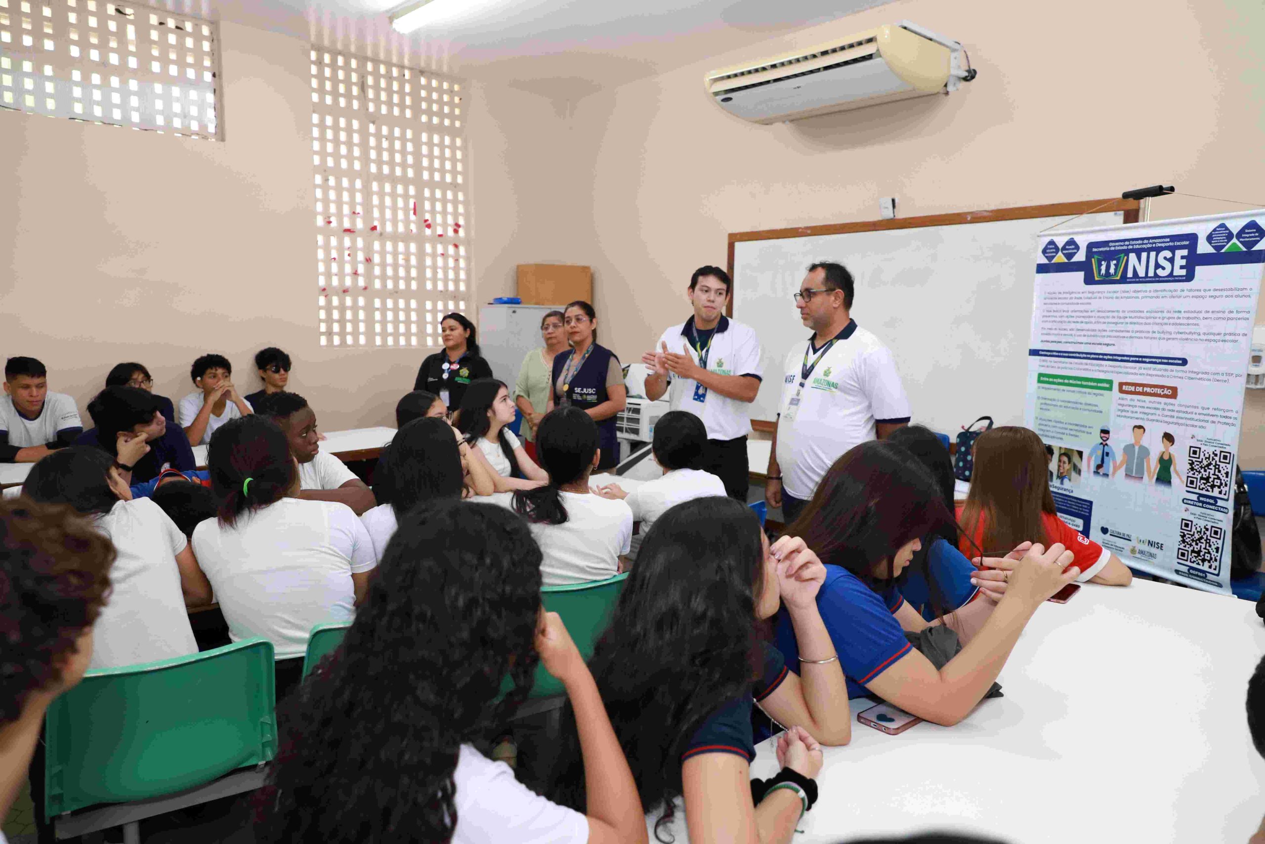 O Núcleo de Inteligência em Segurança Escolar (Nise), criado em 2023 pela Secretaria de Estado de Educação e Desporto Escolar, foi destaque como uma das 67 iniciativas, em âmbito nacional, voltadas para a valorização da cultura da paz nas escolas da rede estadual de ensino. As ações realizadas pelo núcleo já alcançaram mais de 600 escolas, nos 62 municípios do Amazonas.