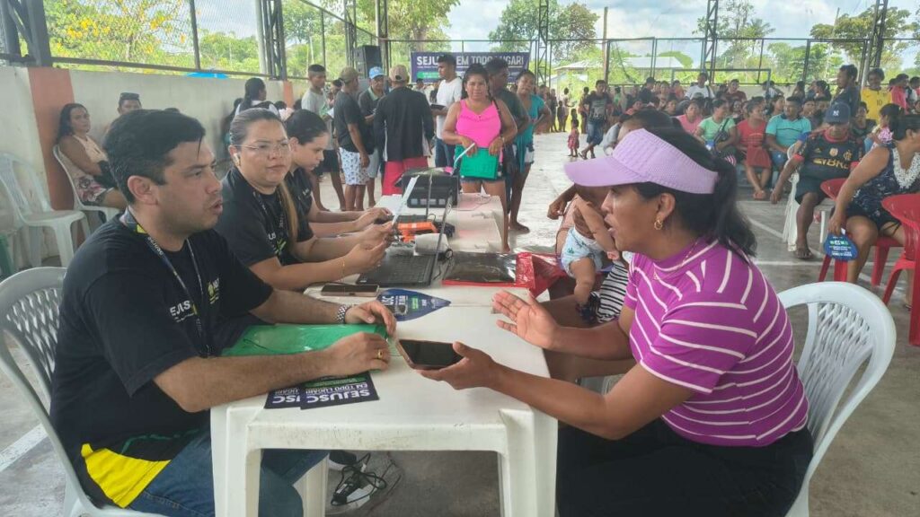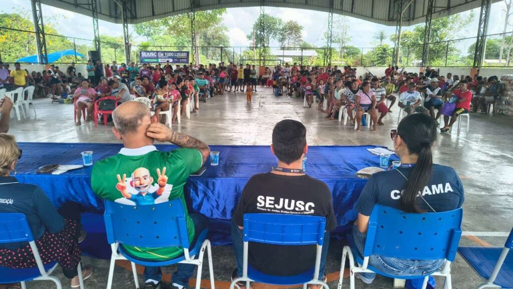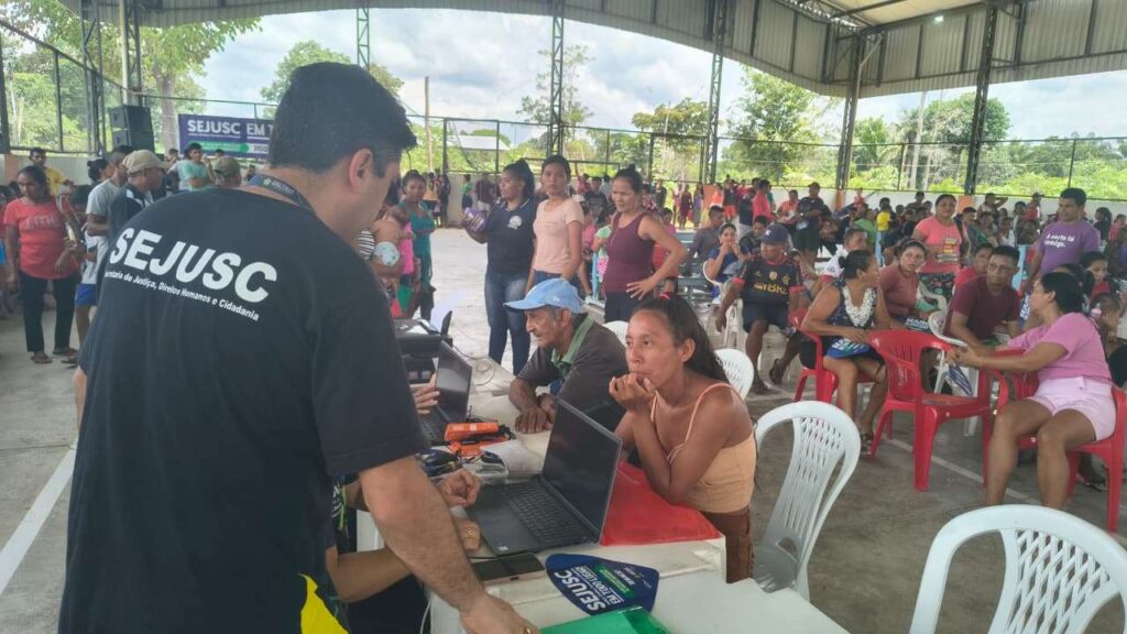 Com o propósito de aproximar serviços públicos e garantir direitos às comunidades tradicionais, a Secretaria de Justiça, Direitos Humanos e Cidadania (Sejusc) levou, na segunda-feira (03/11), uma série de serviços à Vila Canumã, em Borba (a 151 quilômetros de Manaus). A ação beneficiou 630 pessoas, todas pertencentes aos povos originários da região, promovendo acesso à cidadania e valorização cultural.