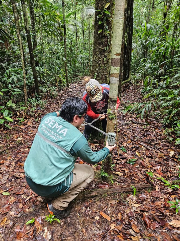A Secretaria de Estado do Meio Ambiente (Sema) realizou, de segunda-feira (09/02) até esta quinta-feira (12/02), a instalação de câmeras trap no Parque Estadual Matupiri e nas Reservas de Desenvolvimento Sustentável (RDS) do Igapó-Açu e do Rio Amapá, Unidades de Conservação localizadas na área de influência da BR-319.
