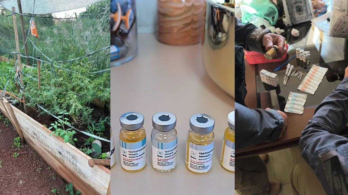 Entre as dez prisões, o MP informou que duas foram temporárias e oito em flagrante. Também foram apreendidas quantidades significativas de anabolizantes e uma estufa de maconha.