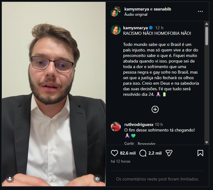 “Todo mundo sabe que o Brasil é um país injusto, mas só quem vive a dor do preconceito sabe o que é. Fiquei muito abalada quando vi isso, porque sei de toda a dor e sofrimento que uma pessoa negra e gay sofre no Brasil. Mas sei que a Justiça não fechará os olhos para isso”, declarou Kamylinha na publicação.