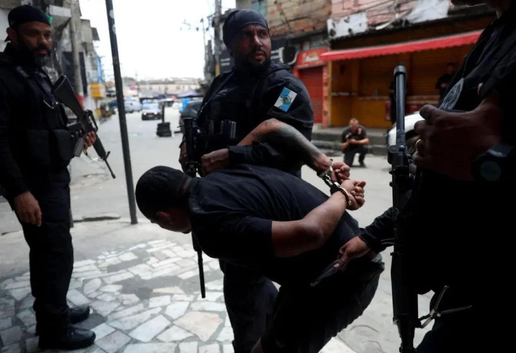 Castro afirmou ainda que o estado do Rio de Janeiro está “sozinho” e cobrou maior integração com o governo federal no combate ao crime organizado. A fala do governador se dá no mesmo dia em que a Polícia do Rio realiza uma megaoperação no Complexo do Alemão que já deixa ao menos 60 mortos.