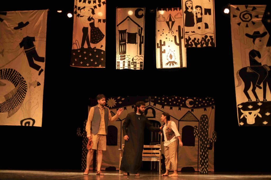 Inspirada na célebre obra do dramaturgo paraibano, a montagem celebra a riqueza da cultura nordestina em uma encenação vibrante, bem-humorada e reflexiva, trazendo à cena um dos maiores clássicos da dramaturgia brasileira, considerado um marco do teatro nacional. A trama acompanha as aventuras de João Grilo e Chicó, personagens populares que, com astúcia e humor, enfrentam desafios e conquistam gerações de espectadores.