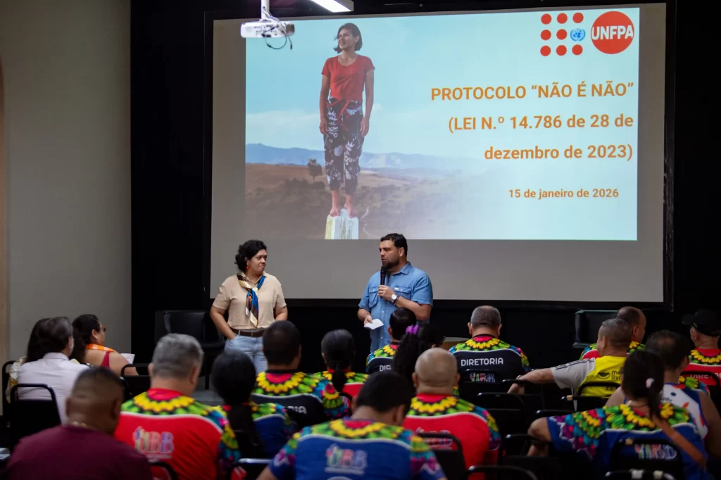 A lei nº 14.786/2023 instituiu o protocolo Não é Não com o objetivo de proteger mulheres contra o assédio e a violência em ambientes de lazer. No Amazonas, a Sejusc é responsável pela implementação, por meio da Secretaria Executiva de Políticas para Mulheres (SEPM). A proposta é reforçar a mensagem de respeito e prevenir o constrangimento e a violência contra mulheres.