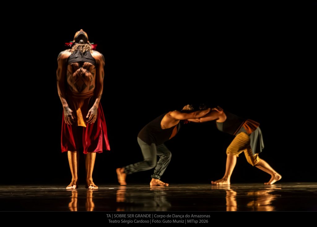 A obra apresentada na mostra, “TA | Sobre Ser Grande”, propõe uma reflexão artística sobre o território amazônico. Inspirada na cultura, na ancestralidade e na cosmologia do povo indígena Tikuna, a coreografia utiliza o corpo dos intérpretes como forma de expressão da pluralidade cultural da região Norte.