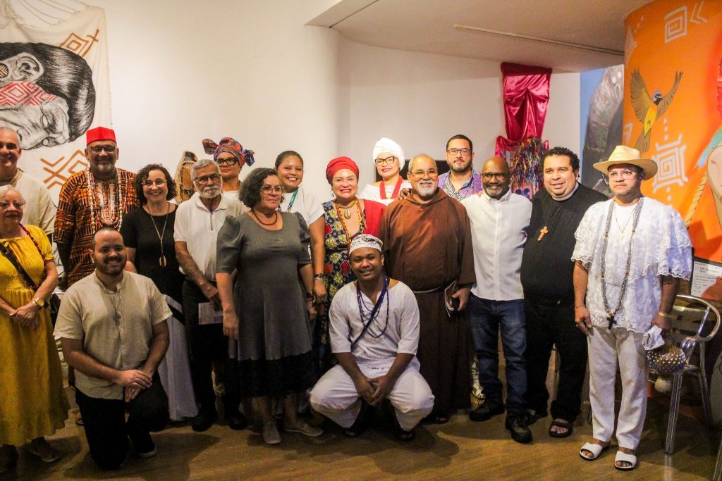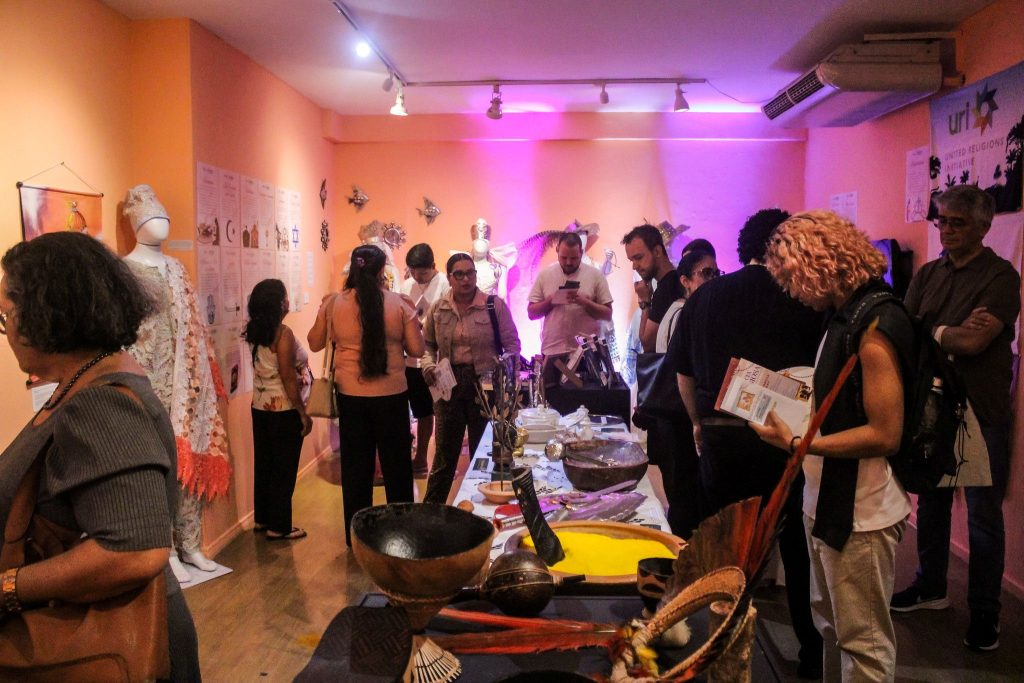 A programação seguiu com a apresentação cultural do grupo Águas de Oxalá, que conduziu um cortejo até o espaço expositivo, apresentando elementos simbólicos das religiões participantes e reforçando a dimensão cultural e espiritual presente na mostra.