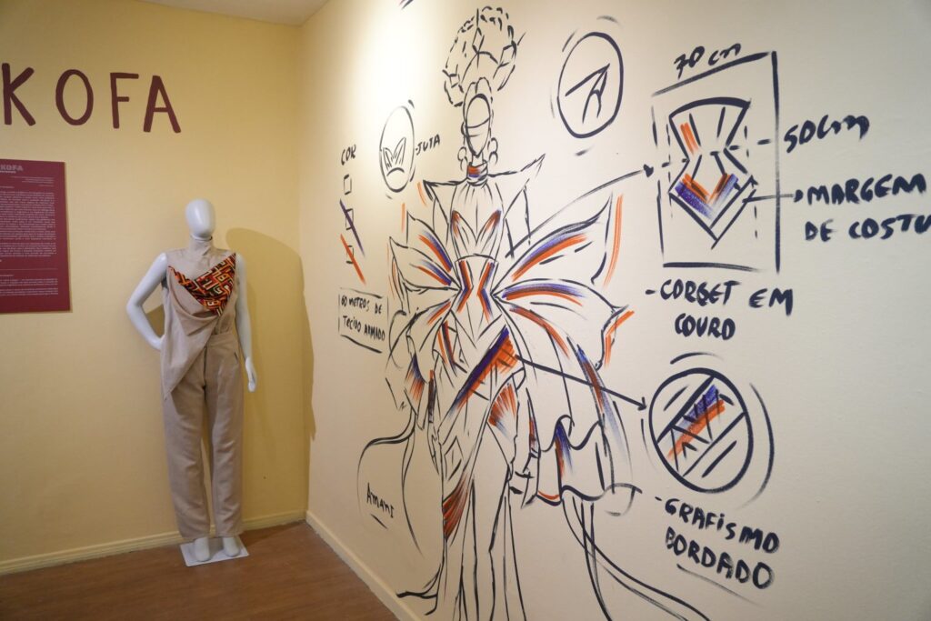 A curadoria reforça o caráter artístico da exposição ao unir moda e artes visuais. Segundo Cristóvão Coutinho, o processo de montagem buscou traduzir esse diálogo de forma sensível e simbólica. “A intenção foi partir das artes visuais, priorizando o desenho dos croquis nas paredes, que aproximam o público dessa linguagem, e ao mesmo tempo mostrar algumas peças elaboradas pelo estilista, revelando o pertencimento afro e a ancestralidade presentes em cada criação”, explicou.