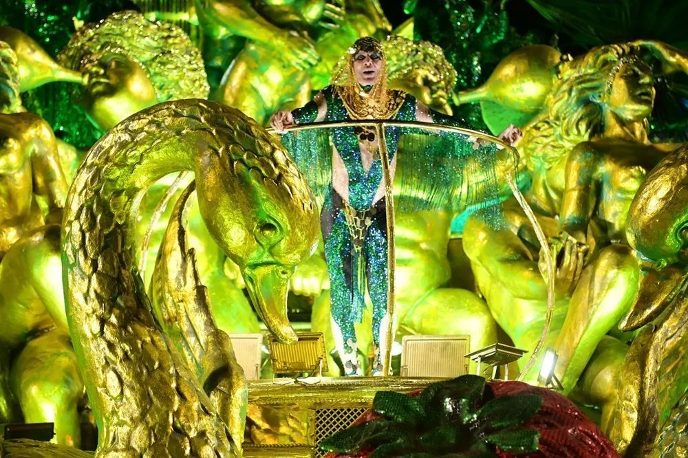 A estética sensual de Ney foi refletida na bateria, que contou com a presença da cantora Iza simbolizando uma serpente, em meio a figurinos vibrantes e luxuosos.