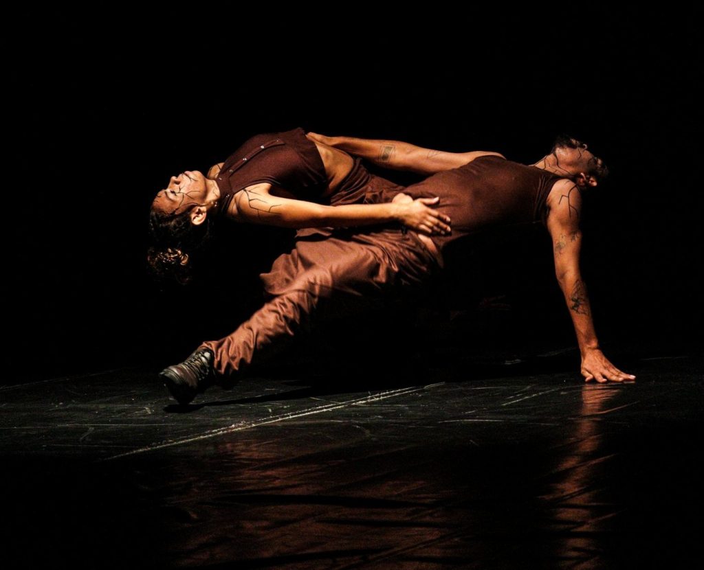A primeira obra da noite, Ruína, transforma o palco em um território de denúncia e sensibilidade ao abordar o desmatamento e seus impactos. A coreografia evidencia a fragilidade da floresta e a urgência de sua preservação, evocando a Amazônia como espaço de vida, conflito e resistência.