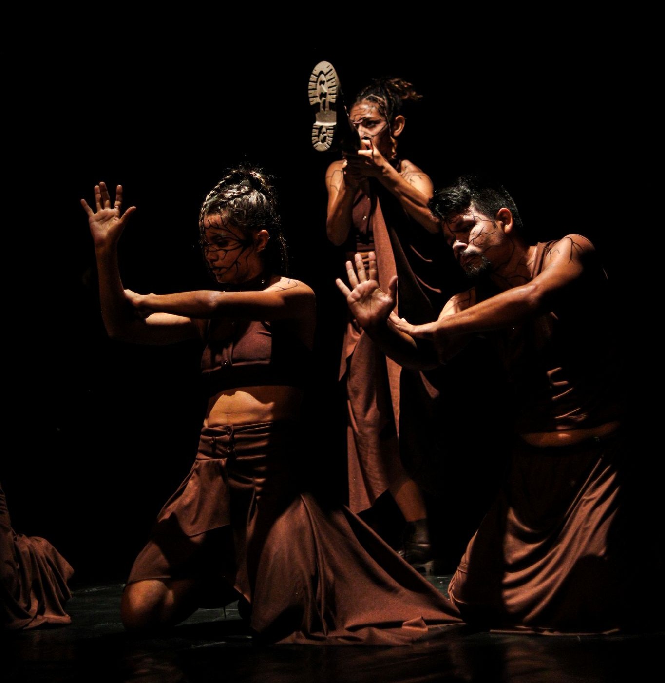 A primeira obra da noite, Ruína, transforma o palco em um território de denúncia e sensibilidade ao abordar o desmatamento e seus impactos. A coreografia evidencia a fragilidade da floresta e a urgência de sua preservação, evocando a Amazônia como espaço de vida, conflito e resistência.