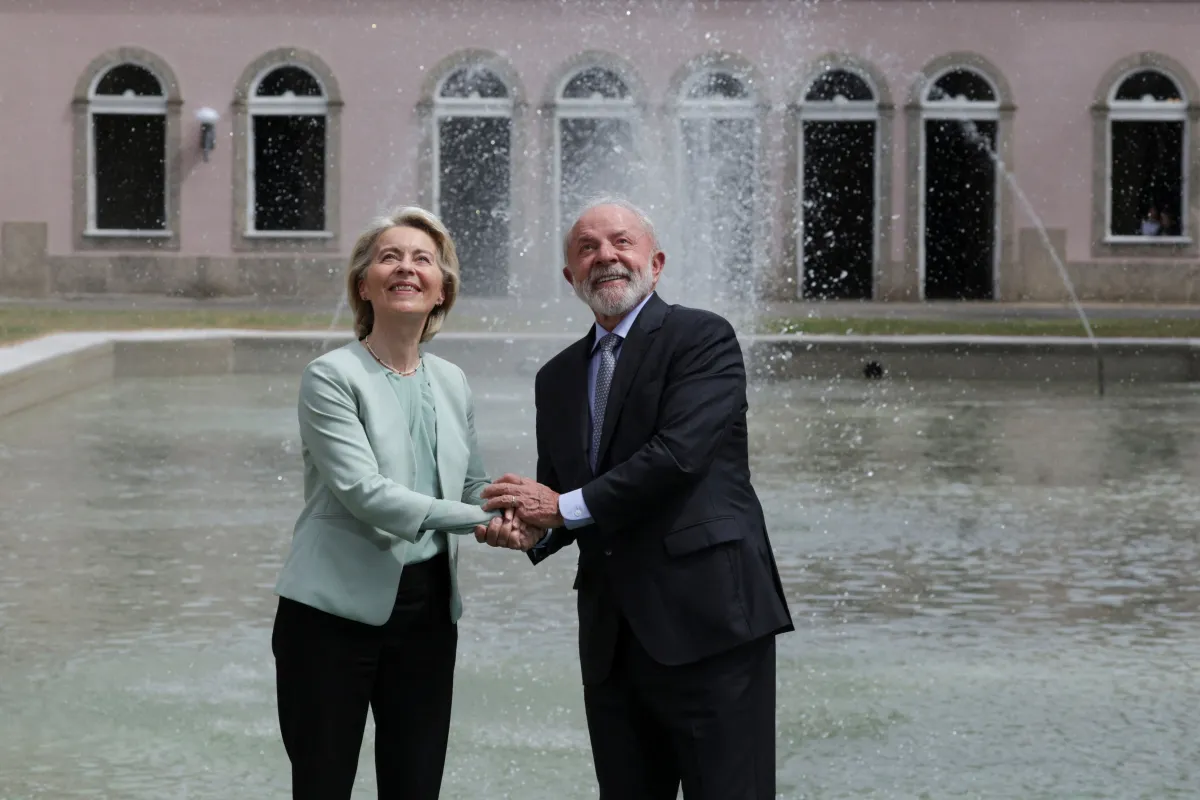 “O acordo Mercosul-UE multiplicará oportunidades como nunca antes. Com acesso mútuo a mercados estratégicos. Regras claras e previsíveis. Padrões comuns. E cadeias de suprimento que se transformam em verdadeiras rodovias para investimentos”, declarou ela, durante pronunciamento no Palácio do Itamaraty, no Rio de Janeiro, onde se encontrou com o presidente Luiz Inácio Lula da Silva nesta sexta (16).