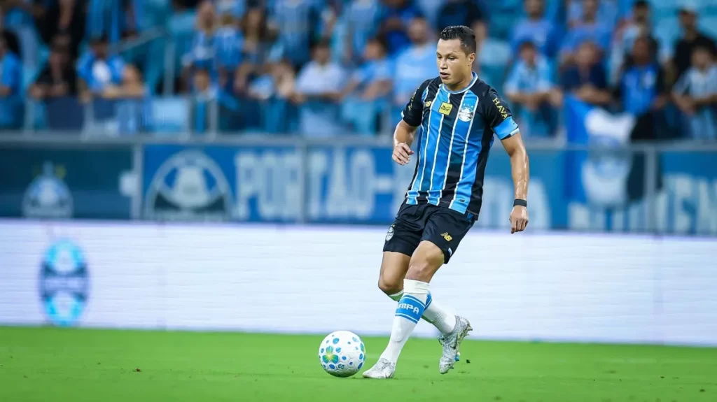 O lance ocorreu durante uma disputa de bola com os volantes Caíque e Baralhas no triunfo gremista por 2 a 0.