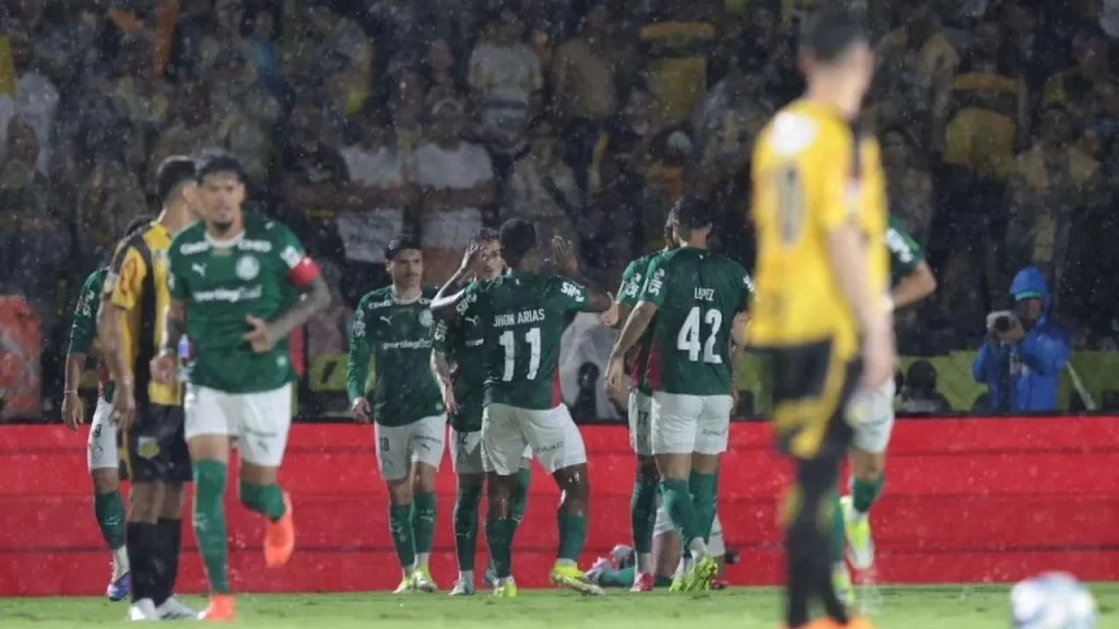 Carlos Miguel deu um chutão para frente, Flaco López desviou de cabeça, o goleiro Jordi saiu todo atrapalhado, não fez o corte e se chocou com Jhon Arias. A bola ficou se oferecendo para o jovem centroavante, que aproveitou para ampliar a vantagem palestrina no agregado do confronto.