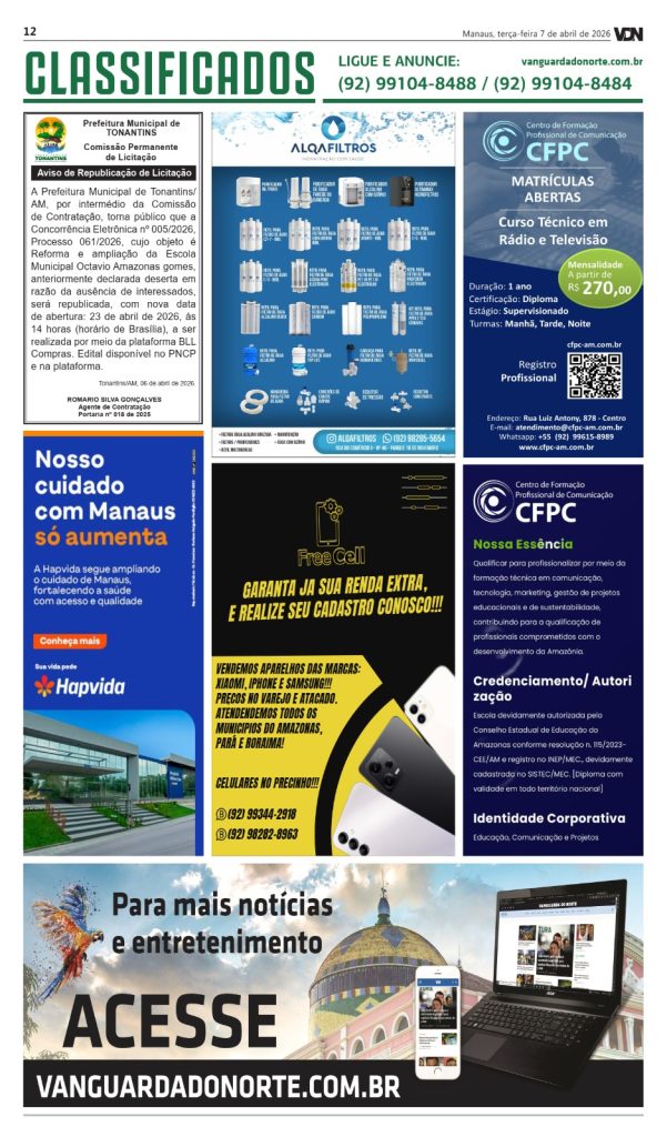 Inscrições para concurso da Ufam com salários de até R$ 6 mil encerram nesta segunda (6)6 de abril de 2026