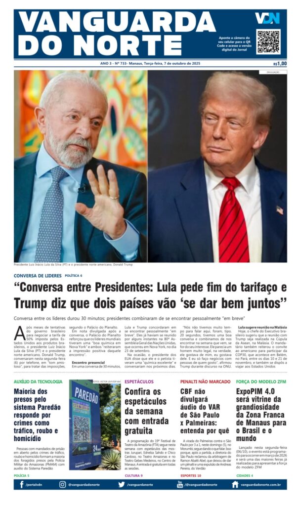 Presidente Lula e Donald Trump conversaram por 30 minutos em “tom amistoso”, diz Planalto6 de outubro de 2025