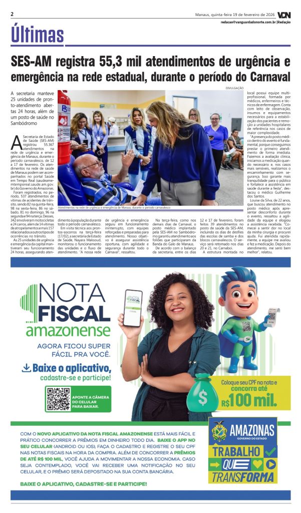 SES-AM registra 55,3 mil atendimentos de urgência e emergência na rede estadual, durante o período do Carnaval18 de fevereiro de 2026