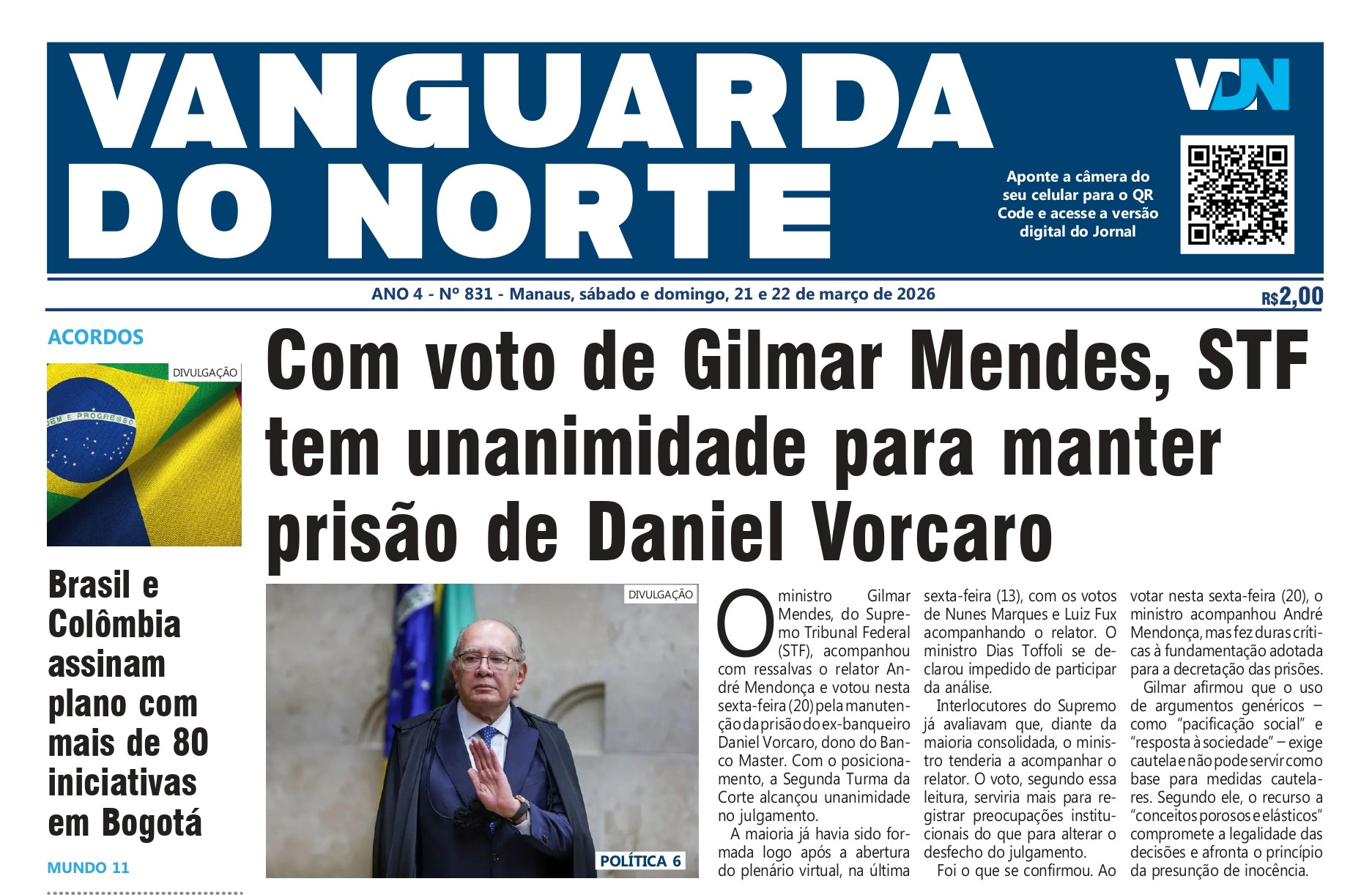 Com voto de Gilmar Mendes, STF tem unanimidade para manter prisão de Daniel Vorcaro20 de março de 2026