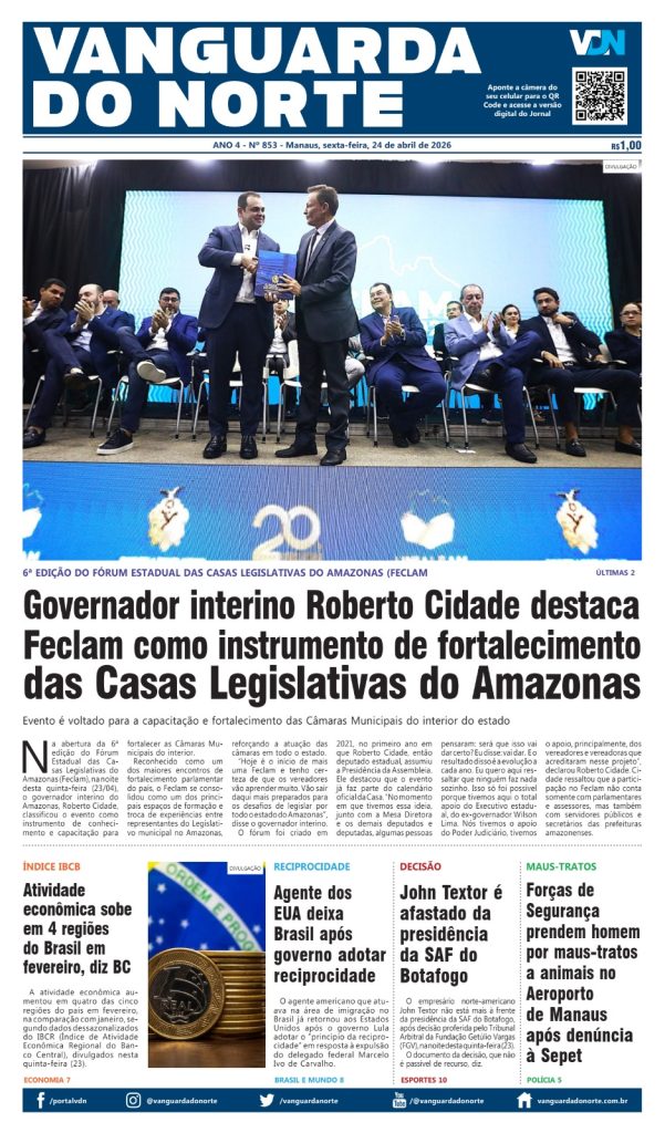 Governador interino Roberto Cidade destaca Feclam como instrumento de fortalecimento das Casas Legislativas do Amazonas23 de abril de 2026