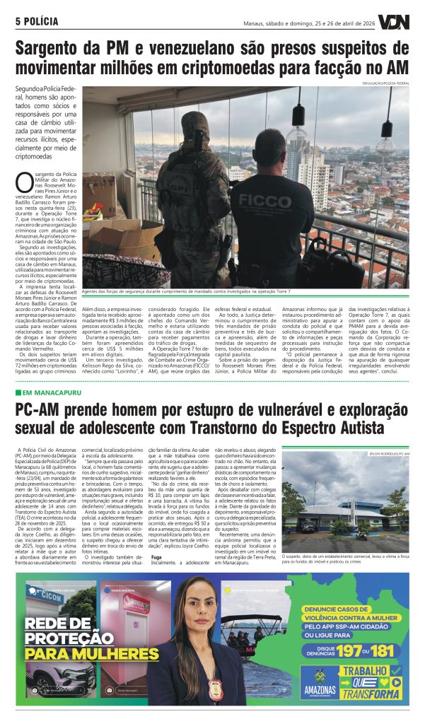 PC-AM prende homem por estupro de vulnerável e exploração sexual de adolescente com Transtorno do Espectro Autista24 de abril de 2026