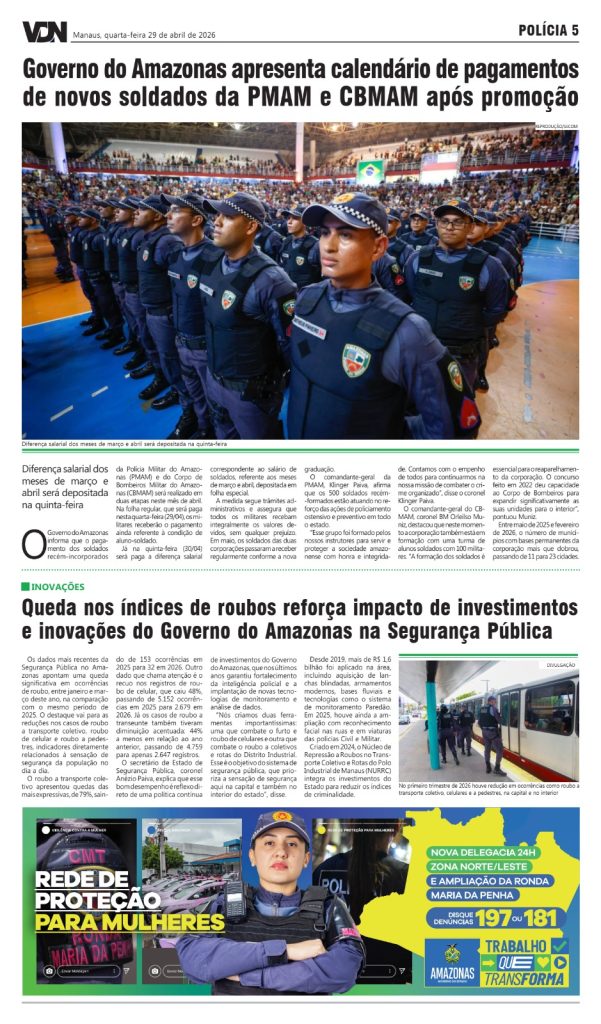 Governo do Amazonas apresenta calendário de pagamentos de novos soldados da PMAM e CBMAM após promoção28 de abril de 2026
