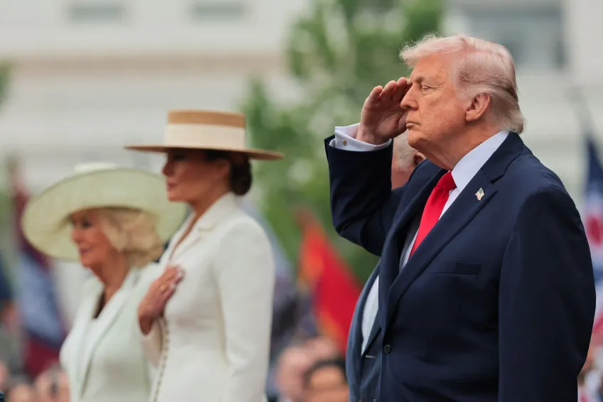 Depois, Charles III e Trump inspecionaram as tropas em desfile, antes do presidente discursar, encerrando a cerimônia.