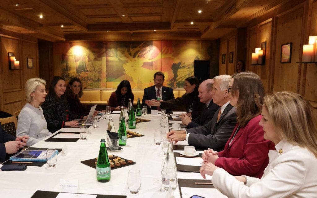 A presidente da Comissão Europeia, Ursula von der Leyen, discutiu a escalada da disputa entre os Estados Unidos e a Europa sobre a Groenlândia com uma delegação do Congresso americano em Davos, na Suíça.