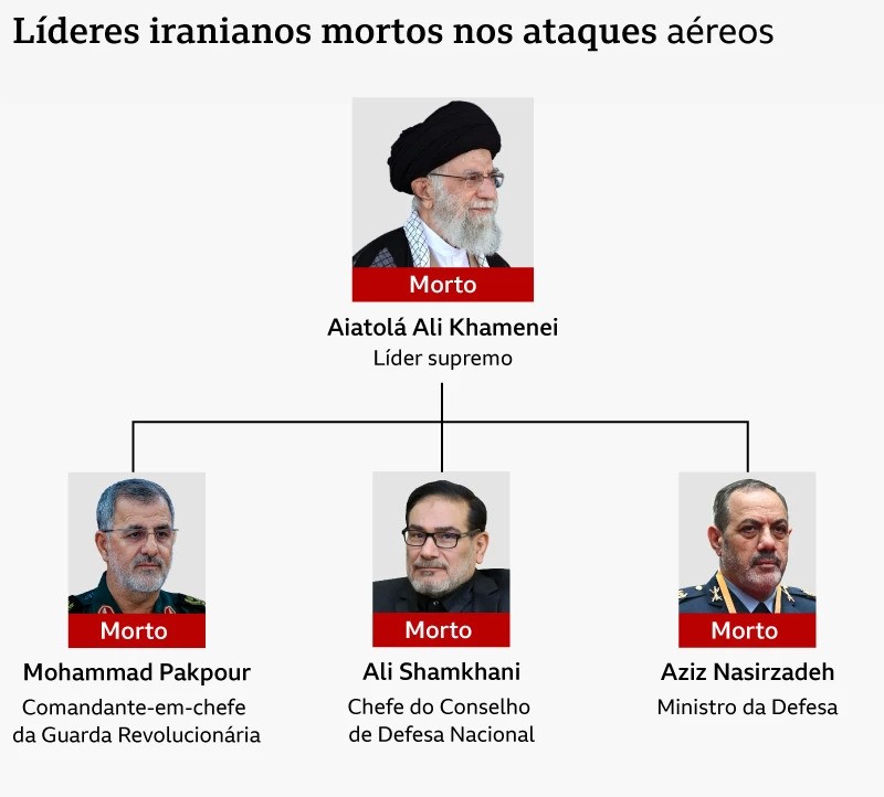 Relatórios indicam que vários comandantes de alto escalão foram mortos nos ataques iniciais. Os oficiais sobreviventes permanecem sob ameaça, enquanto as operações aéreas continuam.