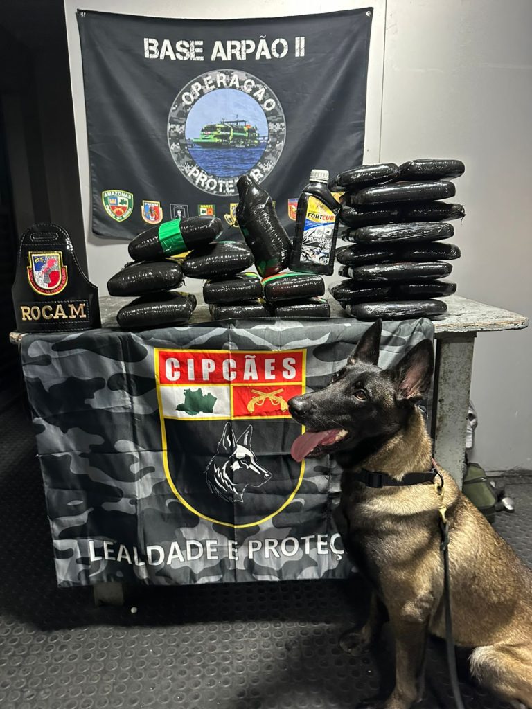 A Polícia Militar do Amazonas (PMAM), em operação na Base Fluvial Arpão 2, apreendeu, na madrugada desta quinta-feira (08/01), 35 quilos de entorpecentes, incluindo dois litros de óleo de maconha (BHO). Um homem de 29 anos foi preso em flagrante por tráfico de drogas.