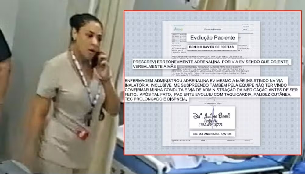 Após a reação, a equipe levou a criança para a sala vermelha, onde o quadro se agravou. A oxigenação caiu para cerca de 75%, e uma segunda médica foi acionada para iniciar o monitoramento cardíaco. Pouco depois, foi solicitado um leito de UTI, e Benício foi transferido no início da noite de sábado.