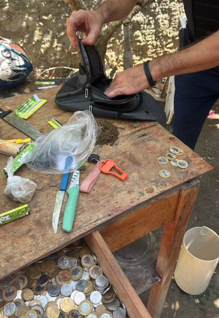 “Iniciamos uma vigilância discreta, momento em que visualizamos, através das brechas do portão da residência, o alvo no interior do imóvel, na companhia do trio, manuseando substâncias entorpecentes, supostamente destinadas à comercialização”, explicou o delegado.