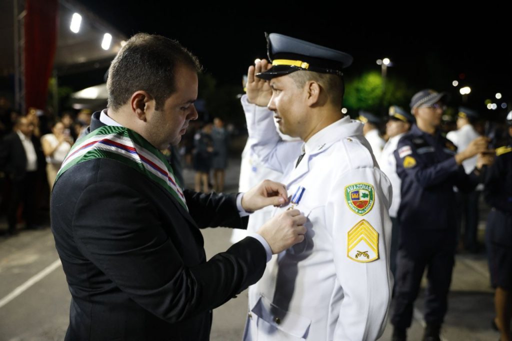 O governador interino Roberto Cidade foi agraciado com a outorga da Ordem do Mérito da Polícia Militar, uma das mais altas honrarias concedidas pela corporação. A comenda reconhece personalidades e autoridades que se destacam pelo apoio, contribuição e relevantes serviços prestados ao fortalecimento e desenvolvimento da Polícia Militar do Amazonas.