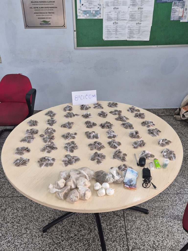A Polícia Militar do Amazonas (PMAM), por meio da 8ª Companhia Interativa Comunitária (Cicom), capturou um foragido da Justiça pelo crime de roubo e apreendeu com ele 425 trouxinhas de maconha e 15 porções de outros entorpecentes. A ação policial foi efetuada no domingo (18/01), no bairro Compensa, zona oeste da capital.