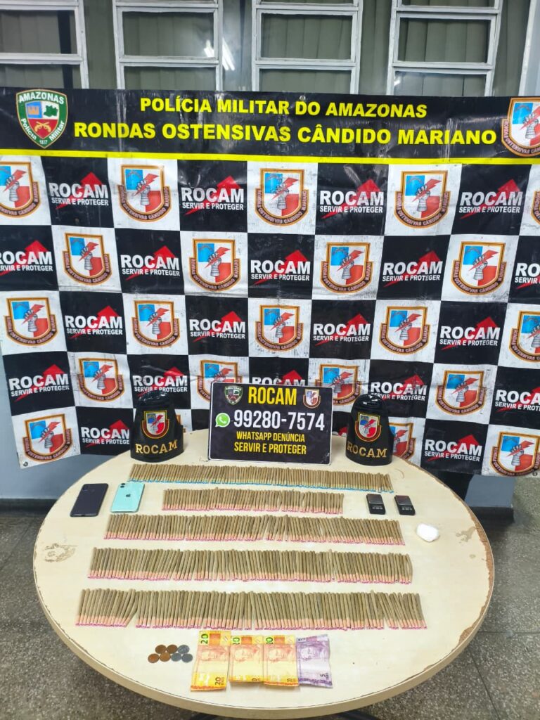 A Polícia Militar do Amazonas (PMAM), por meio das Rondas Ostensivas Cândido Mariano (Rocam), na noite de segunda-feira (09/02), prendeu um homem, de 25 anos, suspeito de envolvimento com o tráfico de drogas. A prisão foi efetuada no bairro Mauazinho, zona leste de Manaus, e resultou na apreensão de mais de 400 cigarros de maconha, porção de cocaína e balanças de precisão.