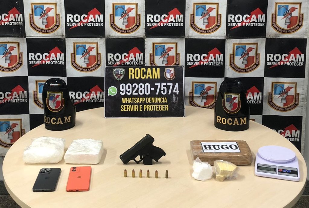 A Polícia Militar do Amazonas (PMAM), por meio das Rondas Ostensivas Cândido Mariano (Rocam), prendeu um homem, de 23 anos, suspeito de participar de um roubo seguido de morte, na noite de quarta-feira (15/04), no bairro Jorge Teixeira, zona leste de Manaus. A ação policial resultou na apreensão da pistola utilizada no crime, tabletes de drogas e munições.