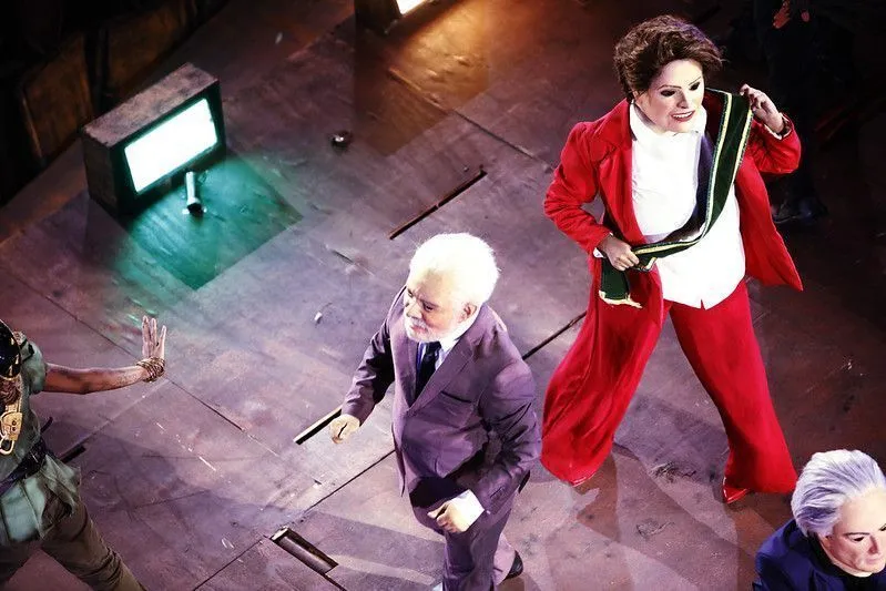 Também foi mostrado o ex-presidente Michel Temer (MDB) “roubando” a faixa presidencial de Dilma. Depois, Lula é preso, Temer passa a faixa ao palhaço Bozo — personagem famoso dos anos 1980 —, que estaria representando Jair Bolsonaro (PL).