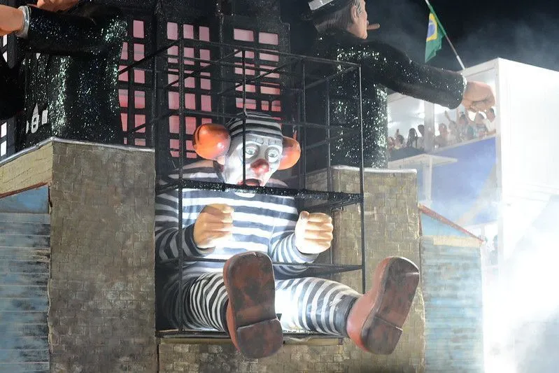 Em uma das alegorias, foi mostrado um palhaço preso, em referência a Bolsonaro.