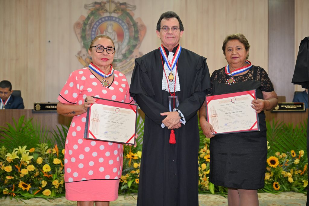 Entre os momentos mais emocionantes da cerimônia estão as homenagens feitas aos servidores mais antigos do Tribunal, que receberam a medalha do Mérito, e a todas as mulheres, representadas pela senhora Therezinha de Jesus Santos, servidora aposentada do Instituto Nacional de Seguridade Social (INSS), que foi saudada pelas desembargadoras Maria das Graças Figueiredo e Vânia Marques Marinho.