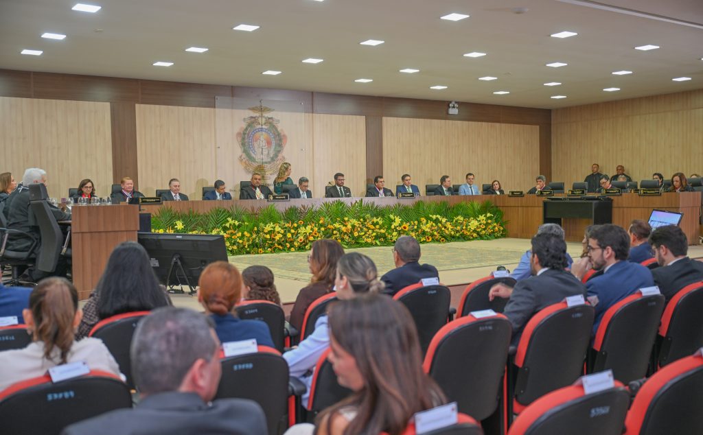 Além do presidente da Corte, desembargador Jomar Fernandes, compuseram a mesa de honra da sessão solene os desembargadores Airton Gentil, vice-presidente do TJAM; José Hamilton Saraiva dos Santos, corregedor-geral de Justiça do Amazonas; Maria das Graças Figueiredo; Socorro Guedes; Cláudio Roessing; Carla Reis (presidente do Tribunal Regional Eleitoral do Amazonas); Jorge Lins; Vânia Marques Marinho; Onilza Gerth; Henrique Veiga Lima; Lia Maria Guedes de Freitas; e Cezar Bandiera, bem como os juízes convocados Ana Maria Diogenes e Gildo Alves de Carvalho Filho.