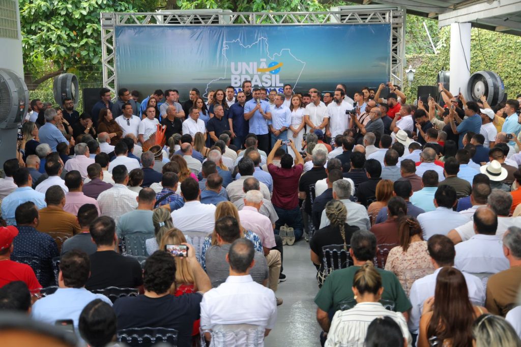 O governador e presidente estadual do União Brasil, Wilson Lima, anunciou nesta segunda-feira (2), na sede do partido em Adrianópolis, Manaus, que permanecerá no cargo até 5 de janeiro de 2027, quando passará oficialmente a faixa para seu sucessor. O anúncio reuniu 38 prefeitos, 6 vice-prefeitos, 27 ex-prefeitos, 17 vereadores, 20 deputados, 7 lideranças do interior, além de secretários estaduais, integrantes da executiva do União Brasil e representantes de partidos aliados.