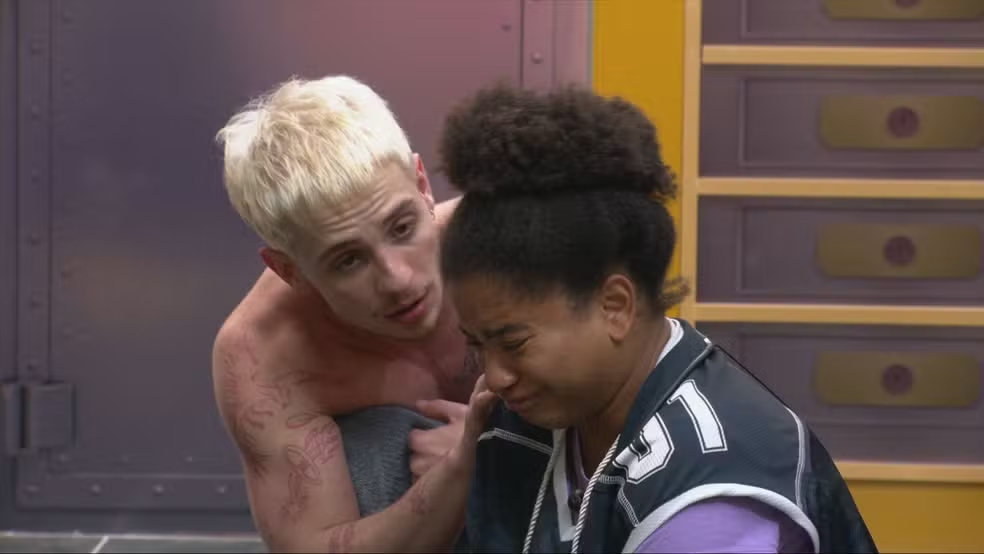 Milena voltou à casa mais vigiada do país depois de sair da primeira Prova do Líder da edição. Ela entrou na sala chorando e recebeu o apoio de Juliano. “Sei que você perdeu a prova, mas você está aqui”, declarou Floss ao tentar ajudá-la. “Aguentei até agora de manhã, não estou com sono, não estou com fome, queria nem ir ao banheiro. Queria ganhar, todo mundo queria”, desabafou a sister.