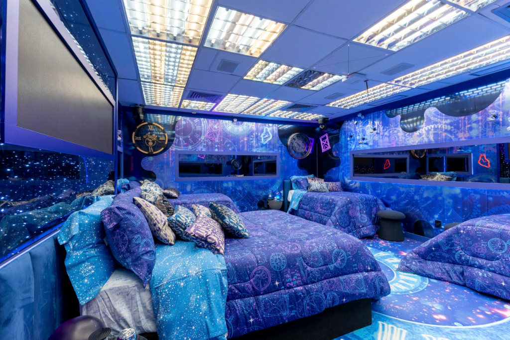 Os quartos foram decorados inspirados em diferentes tipos de sonho. O sonho da eternidade foi enfeitado com tons predominantemente azuis e roxos e estampa de relógios nas paredes, no chão e na roupa de cama.